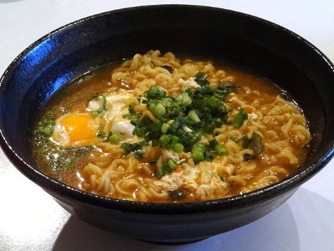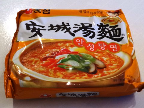 豚キムチ風のヤツはさすがに韓国人だけあって、かなりのクオリティやね。大したもんやわ。この豚キムチ風はだいぶ良かった。うまい。 だいぶうまいわ。野菜も色々入ってた。最後の〆にこの前ランチで行った近所の韓国料理屋でもらったインスタントラーメンを作ってくれた。 「安城湯麺」!!! 韓国のインスタントラーメンっていうカンジや。ちょっとピリ辛やね。卵は2つ入り!!! うまかったなあ〜!!! |