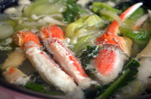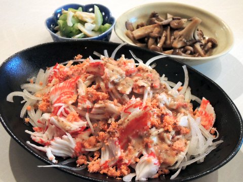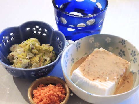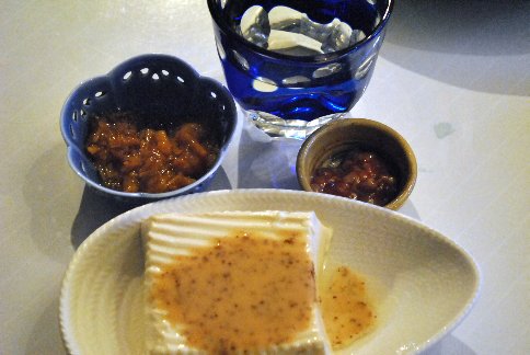 えーっと、この前楽天で注文したカニが届いてたんで、それを昼から食べる事にした。出来上がるまでオレは「イカめし・豆腐・酒盗・