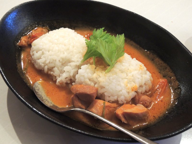 そんでカレーやね。選んだのは一番スタンダードな「チキンカレー」1100円!!! それと「サダーナン」350円が来た。