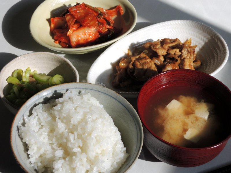 まあそんなカンジで今日の昼メシはこんなカンジやね。肉炒めてある。キムチとセロリもあるわ。セロリにはお茶漬けの元を入れてる みたい。こんな使い方があるねんなあ。