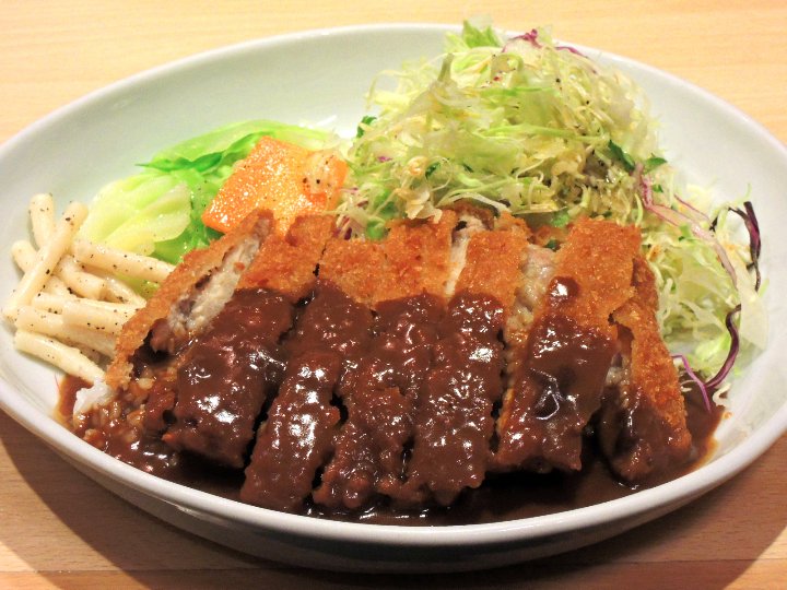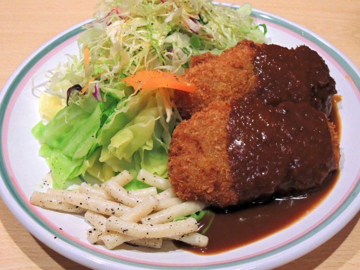 このソースが自家製で独特やった。ミンチカツは実に上手に揚げてあるねん。野菜がたっぷりなトコも実にナイスやね。このソースが 実に意見が分かれるトコやろなあ。マズくはないねんけど、うまいとも思えへんねんなあ。