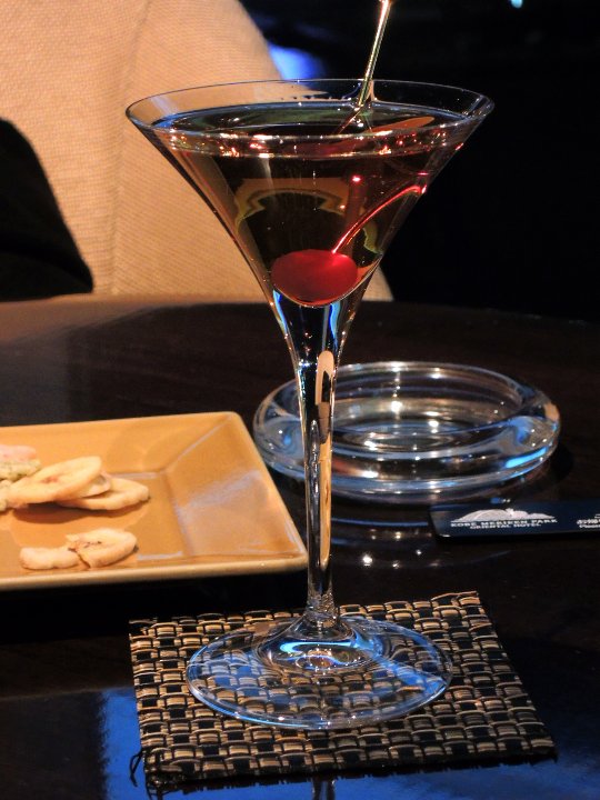 おかきとドライフルーツやってんけど、何でこのタイミングなんやろなあ??? おかわりを要求してるワケやね(笑)。とりあえずオレは もう飲みたくなかったんでチェイサーをもらって、リョンスンに「マンハッタン」1260円を勧めてみた。