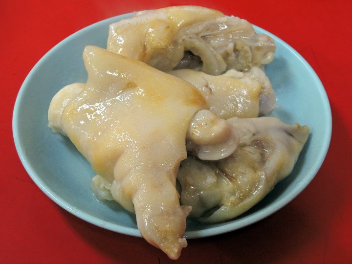 このネギとタレだけでもお酒飲めると思う(笑)。キャベツにこのタレをつけて喰ってもメッチャエエカンジ。さらに「豚足」550円が来た。 リョンスンはこの豚足が大好きやねんなあ。さすが韓国人やわ。日本の女の子でこれスキなヤツってあんまりおらんと思う。