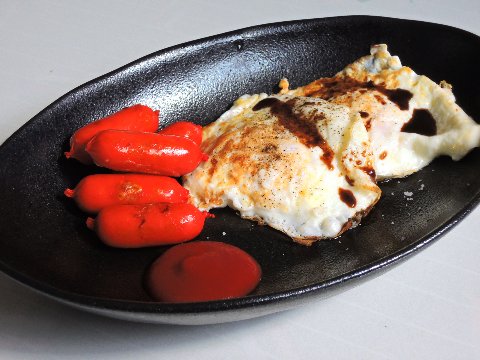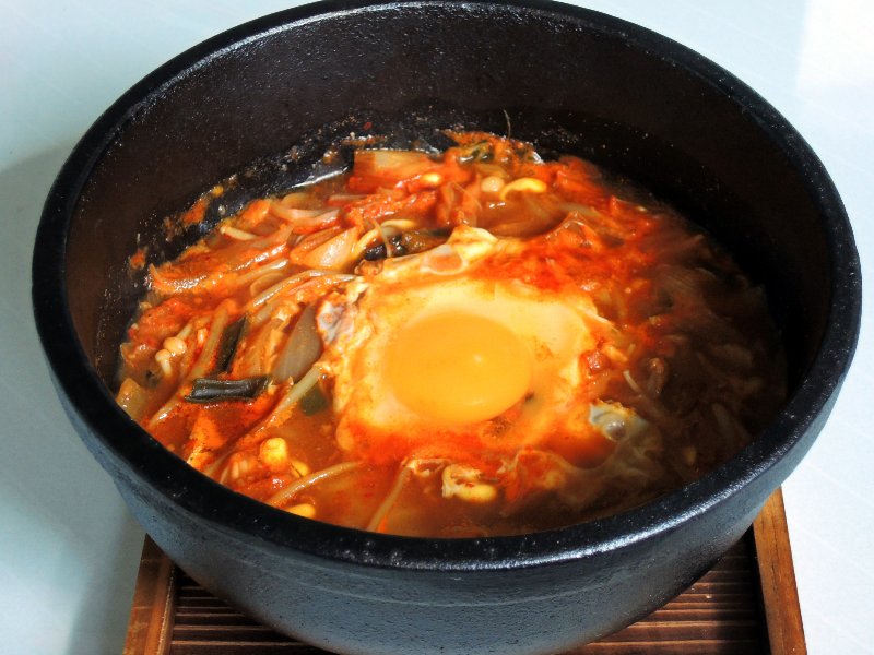 まあそんなカンジで今日の昼メシは、リョンスンがこんなカンジで用意してくれた。いつもの目玉焼きとソーセージ、さらになめ茸と 酒盗やね。ご飯は大盛りで来たわ。ナイス!!! さらに味噌チゲやね。
