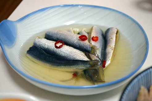 昨日見せてもらった「ままかり」も出てきた。試しに食べてみてんけど、確かにごはんに合うなあ。酢漬けやのに不思議やわ。彼女の 料理は相変わらず素晴らしかった。豚汁に思いっきり野菜が入ってるんがナイスやね。うまかったなあ〜!!!