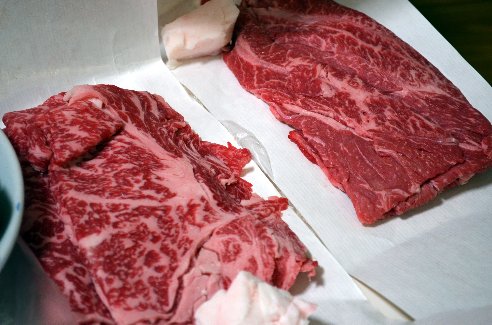 まあそんなカンジで今日の晩メシは、楽天から取り寄せたこの肉ですき焼きをいっといた。那須物産 楽天市場店