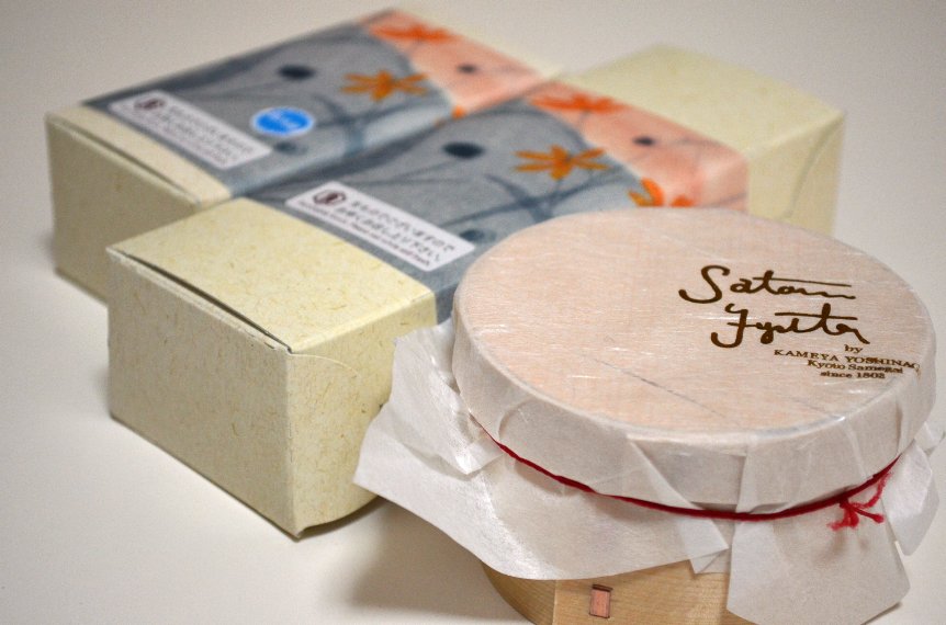 「千本玉寿軒」っていうお店が作ってた。この前試した金閣寺限定のお菓子と同じお店やね。