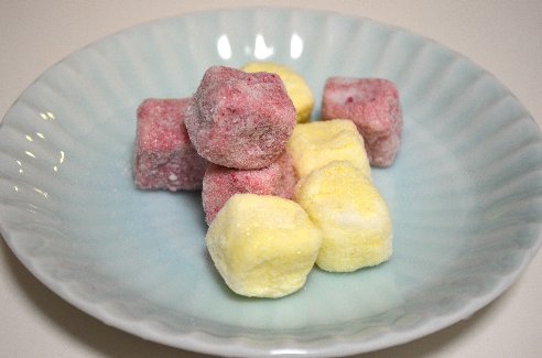 「俵屋吉富」っていうお店が作ってた。これも干菓子やね。「銀沙灘」と「向月台」の二種類が入ってた。銀沙灘は何て言うたら