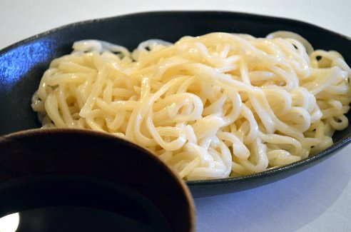 出来上がったうどんがこんなカンジやね。うどん自体はちょっとやわらかめやったなあ。弱火の茹で時間12分でこのやわらかさ