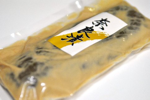 この表面は洗って、そんで一口サイズに切ってもらった。奈良漬けは今まで色々食べてきたけど、かす漬けの奈良漬けは初めてや。