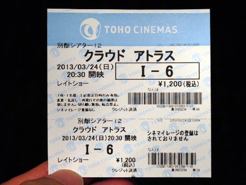 そんでまあ帰りに映画やね。「トーホーシネマズ難波」に寄ってみた。選んだ映画は「クラウド・アトラス」!!!