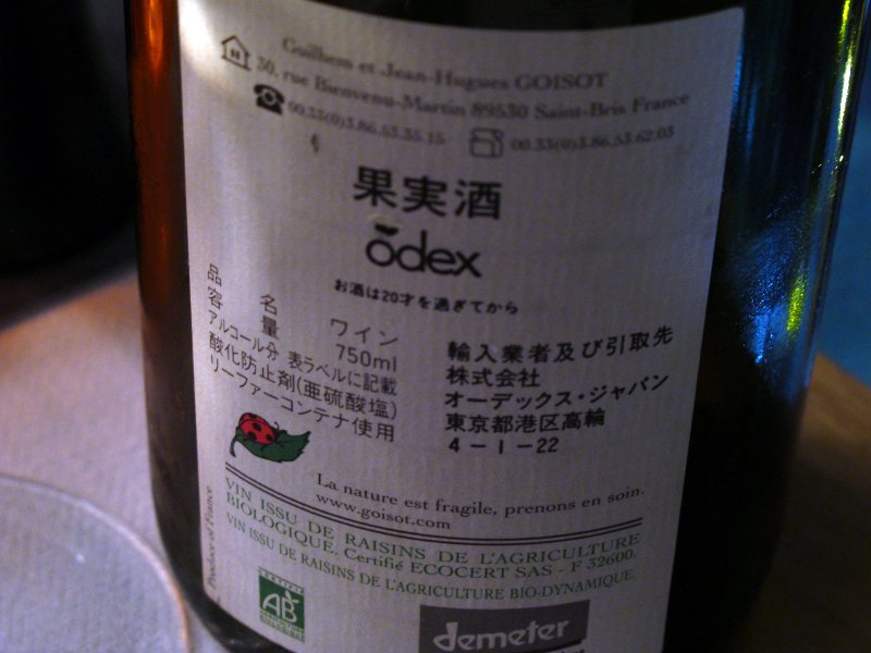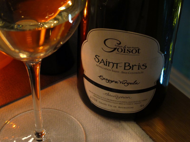まず白ワインをボトルでいっといた。「サン・ブリ ソーヴィニョン "エクソギラ ヴィルギュラ" / ゴワゾ 2010」4500円→2250円!!! Saint-Bris Sauvignon Exogyra Virgula / Goisot 2010 シャルドネが主体のブルゴーニュでは珍しいソーヴィニヨン・ブランやね。