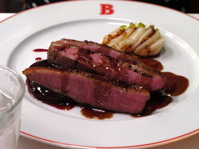 そんでまあメインやね。オレが選んだのが「エイひれのムニエル ういきょうのグラッセ」!!! 彼女が選んだのは肉料理やね。 「仏産鴨胸肉のポワレ ビーツと蕪のソテー エシャロット風味のソース」!!!