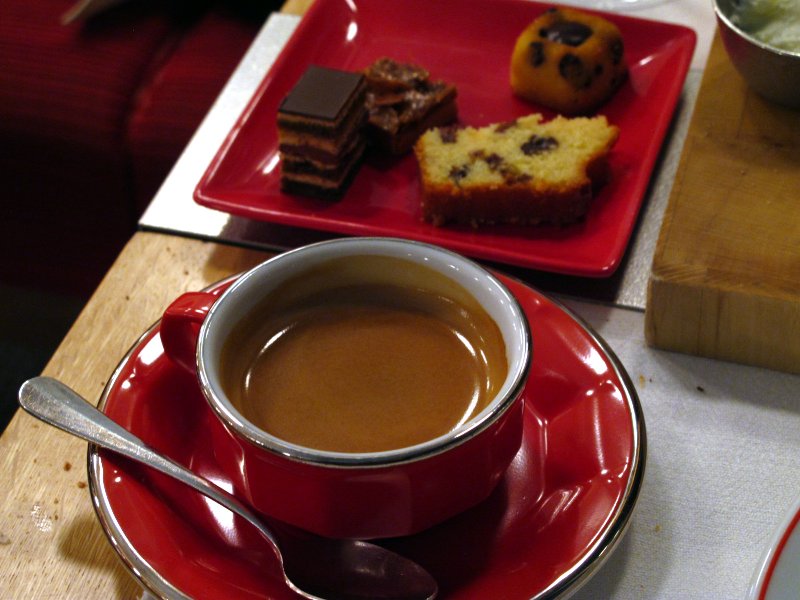 最後にエスプレッソをもらった。ダブルでくれたわ。それと茶菓子やね。だいぶハラパンパンになったなあ。