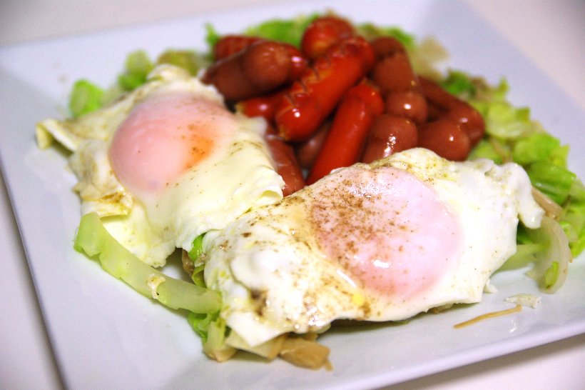 まあそんなカンジでサエが用意してくれた晩メシはこんなカンジ。赤ウインナーとパルキーはオレが頼んだ。