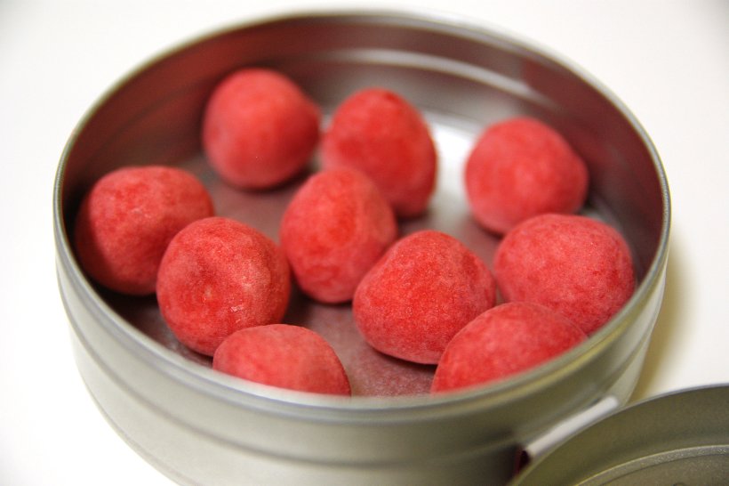 さすがにちょっと高いだけあって、だいぶうまいわ。缶の中にビニールでちゃんと包装してあった。お店の説明はこんなカンジ やったわ。「苺を丸ごと一粒とじこめたフリーズドライの楽しい食感にくわえ甘酸っぱい苺パウダーの酸味とチョコレートの甘味の 絶妙なハーモニー」!!! ホンマにこんなカンジのチョコレートやね。甘酸っぱいカンジ。