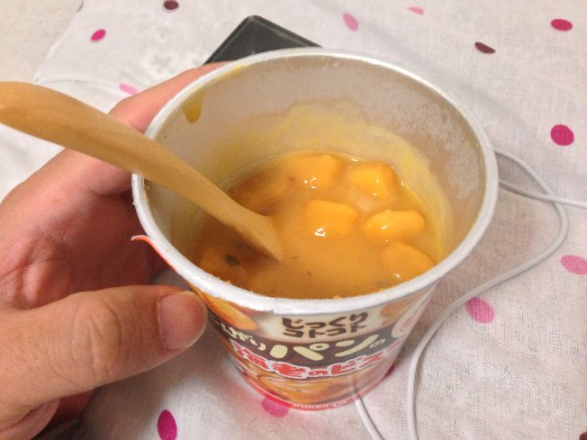 これが実になかなかにうまいねん。こってりした味が実にタマラン。アメリケーヌスープに近いと思う。まあ海老でダシ取ってるから そらそうやねんけど。温かいし、結構お腹もふくれるねんなあ。これ食べてようやく就寝や。。。 |