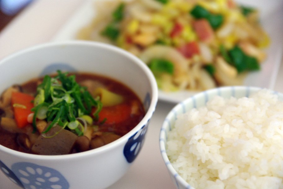 奥の画像はボヤけてるけど、野菜炒めやね。いやあ、相変わらずメッチャうまかったなあ。やっぱり料理がだいぶうまいわ。この 赤出汁の豚汁も思ってた通りの味やった。山椒ふって食べたら実にタマランねんなあ。