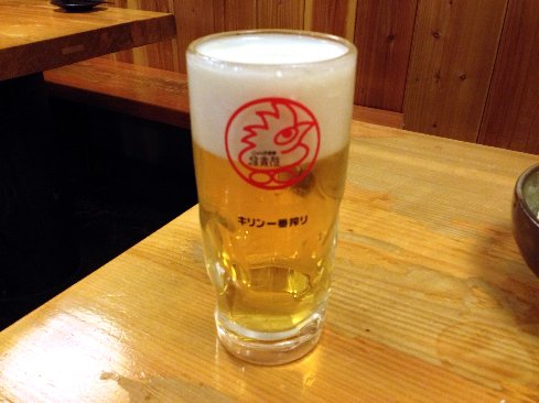 ウーロン茶にしておこうと思っててんけど、ヤキトリ食べたら無性に生ビールが飲みたくなって、思わず注文してもうた(笑)。実に