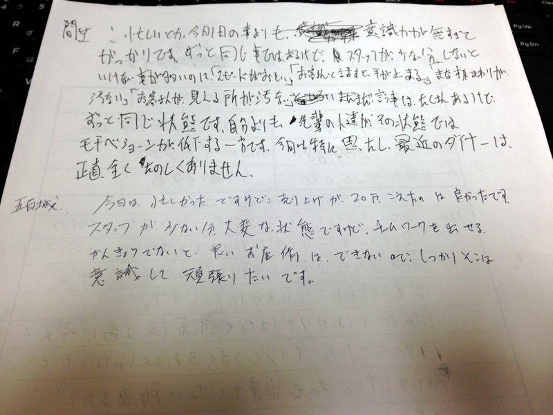 余裕があらへん。しばらく今の体制に慣れるまでの辛抱や。まあ1〜2週間で慣れると思う。えーっと、とりあえず今日も