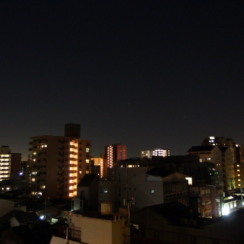 部屋を出たら妙な星の並びを見た。3つ並んでるねん。デジカメで撮るのは無理やと思っててんけど、とりあえず撮って みたら何となく写ってる。技術の進歩は凄いわ。