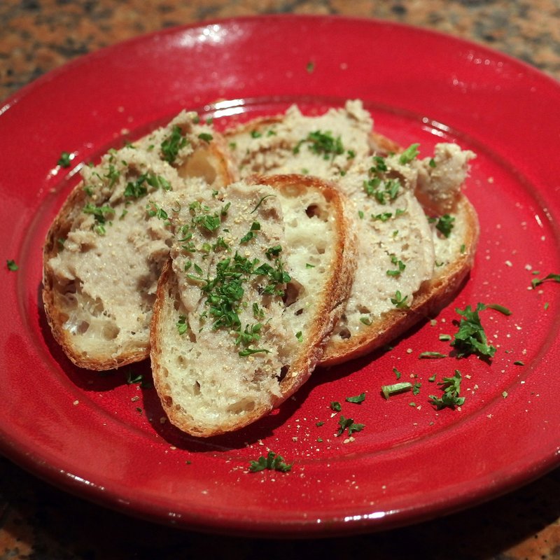 やっぱり白なんでスッキリしてるなあ。煮込み料理を頼もうと思ってたんで赤にしてんけど、白とどう合うかが楽しみに なってきた。付き出しも来た。リエットやね。このリエットがなかなかにうまかってん。見た目も良かったわ。