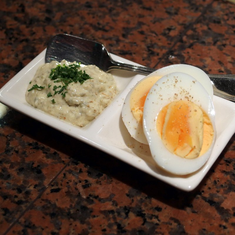 両方ともメッチャエエカンジやね。このゆで卵、実に分かりやすいわ。タルタルソースがうまかったら、これを300円で 売る事が可能やねんなあ。人参とくるみのサラダは実に分かりやすかった。ドレッシングの味も強くないわ。口直しに ちょうどエエカンジなんとちゃうかなあ。白ワインとも合うわ。
