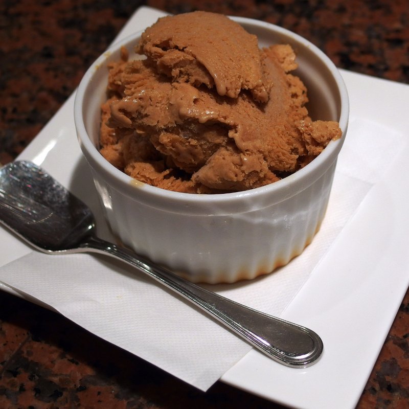 隣の人がデザートを注文してて、実にうまそうやったんでオレも注文する事にした。メニューを見たらこんなカンジやね。 選んだのは「キャラメルアイス」500円!!!