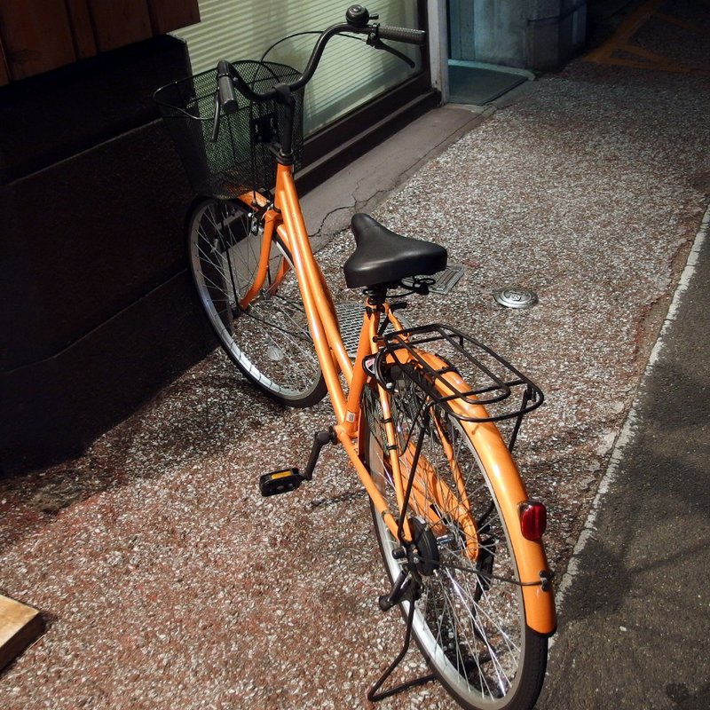 何故かこのお店の前にオレンジのチャリが止まってた。完全にオレのと一緒・・・・・・・!!! オレのチャリかと思ったわ。 カギ持ってたら絶対開くかどうか試してたと思う。こういうカギって全部一緒なんかなあ??? まあ普通は違うよなあ。でも ひょっとしたら同じなんかもしれん。そもそも同じチャリに出会う事がないやん。