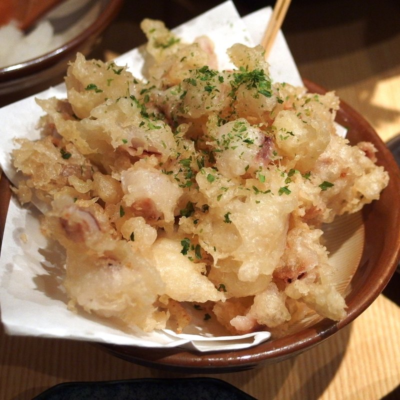 そんでまあ天ぷらをもろもろいっといた。それと「自家製のポテトサラダ 普通盛」380円やね。ズラッと来たわ。だいぶ 注文してもうた(笑)。天ぷらってうまいやん。せやけど安く食べれるお店はあんまり無い。